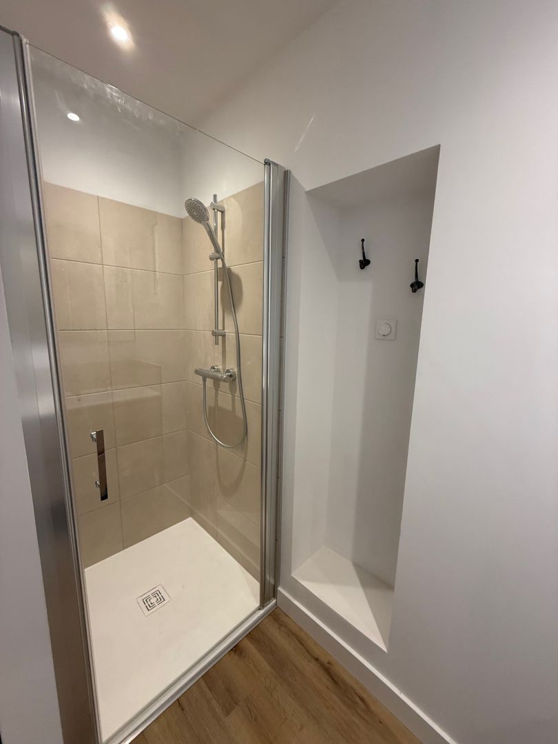 Elle se compose, en rez-de-chaussée, d'un espace cuisine et salle à manger, d'un séjour spacieux et lumineux, d'un bureau qui peut-être utilisé comme chambre, d'une salle d'eau avec douche et d'un toilette indépendant.