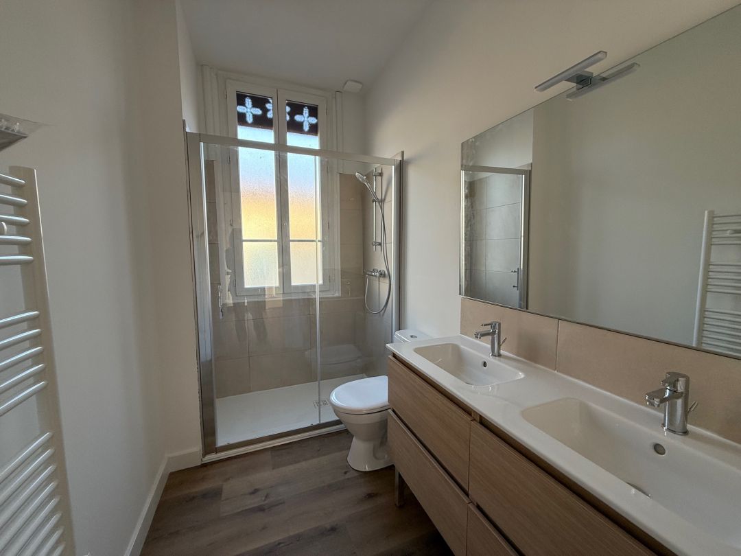 Au 1er et dernier niveau, vous trouverez 4 chambres d'une très belle superficie chacune et disposant toutes de placards intégrés. Vous trouverez également une salle d'eau avec douche et meuble double vasque.