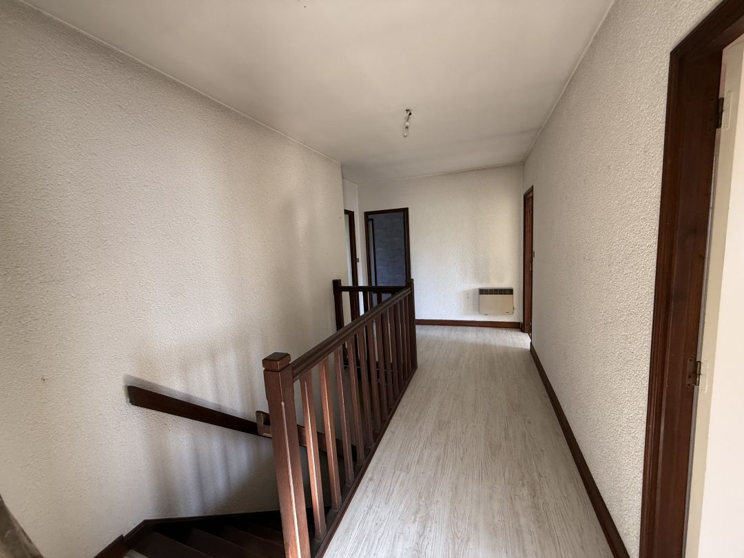 D'environ 92 m2 cette maison de 1983 comprend en rez de chaussée un hall d'entrée, une pièce de vie avec cuisine ouverte sur salon avec cheminée insert et en lien direct avec le jardin et sa terrasse ombragée. Un garage et un WC complètent ce niveau. A l'étage, une coursive distribue sur un WC, une salle de bain et trois chambres.